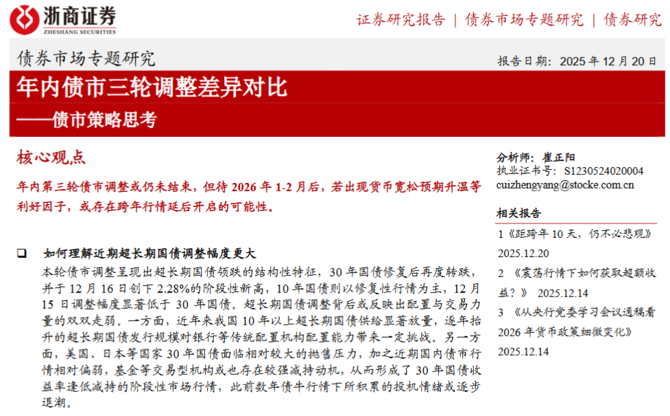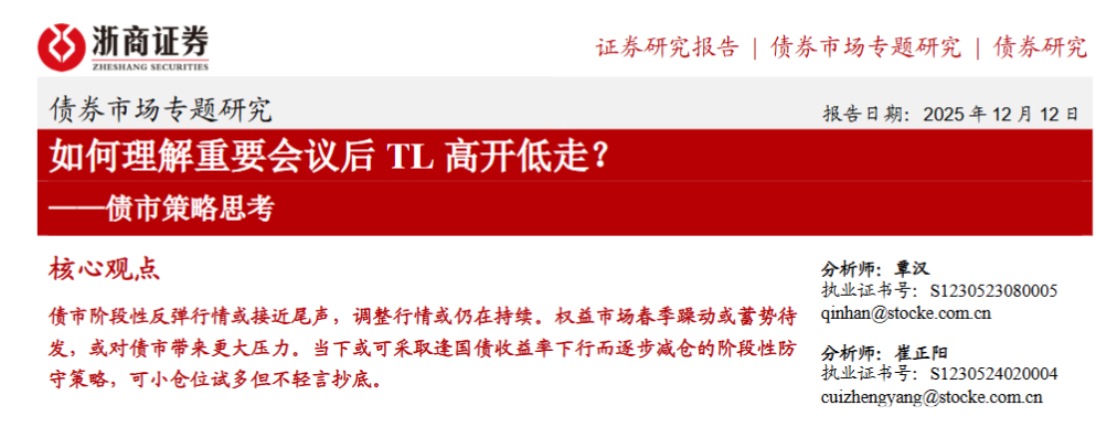 根据浙商证券固收团队发布的正式研究报告,覃汉的姓名最后一次出现在分析师署名栏是在2025年12月12日,相关报告题为《债市策略思考:如何理解重要会议后TL高开低走?》。而在12月20日发布的题为《债市策略思考:年内债市三轮调整差异对比》的研报中,虽然作者处仍列有覃汉,但分析师栏目仅标注崔正阳一人。