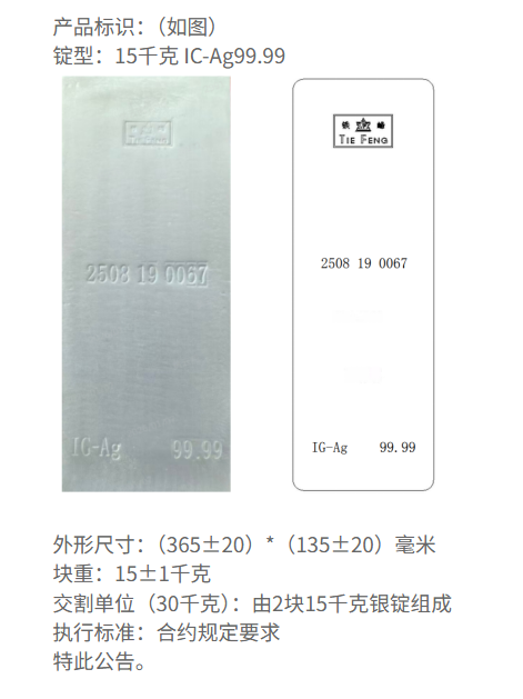 上期所:同意云南铜业增加“铁峰”牌银锭注册产地的公告