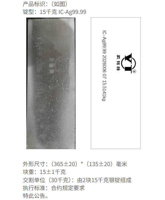 1月12日,上期所公告,上期所同意锡业股份(000960.SZ)生产的“YT”牌银锭在上期所注册,执行标准价。自公告之日起,上述产品可用于我所白银期货合约的履约交割。