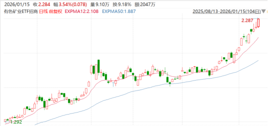1月15日,有色板块全面上涨,白银、小金属表现强势。湖南白银(002716.SZ)涨超8%,华锡有色(600301.SH)、华友钴业(603799.SH)、金钼股份(601958.SH)、中钨高新(000657.SZ)、赣锋锂业(002460.SZ)、中金岭南(000060.SZ)、锡业股份(000960.SZ)等跟涨。有色矿业ETF招商(159690)涨3.54%,盘中刷新上市以来新高。