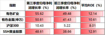 坚实的盈利能力是板块上行的核心基础。2025年前三季度,有色金属行业归母净利润同比增长41.43%,其中,第三季度同比增幅进一步扩大至50.81%。中证有色金属矿业指数盈利弹性优势更大,前三季度、单季度归母净利润分别为49.48%、55.62%。