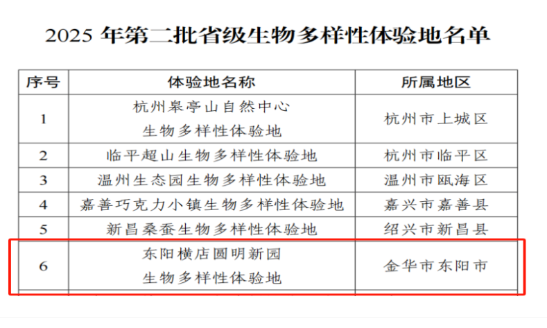 横店圆明新园获评浙江省生物多样性体验地
