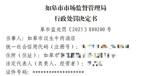 1月19日,据国家企业信用信息公示系统网站(江苏)获悉,南通市如皋市汉生牛肉汤店因在经营中使用可通过组合键作弊的电子计价秤,被江苏省如皋市市场监管局依法处罚。