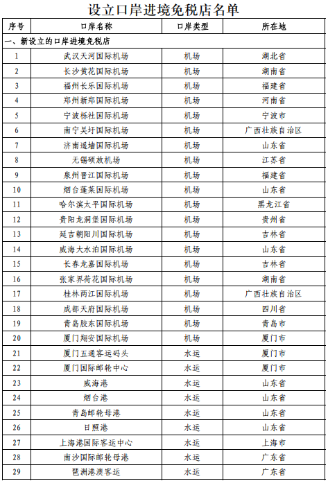 1月21日,财政部、商务部、文化和旅游部、海关总署、税务总局联合印发《关于口岸进境免税店有关事宜的通知》(以下简称《通知》),设立调整一批口岸进境免税店。具体如下: