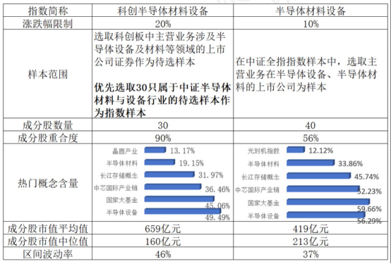 从标的选择上来看,目前市场上聚焦半导体设备的指数有两只,分别是中证半导体材料设备以及科创半导体材料设备指数。前者是科创板中唯一聚焦半导体设备的指数,后者体现行业整体布局,是全市场半导体设备含量最高的指数。(数据来源:Wind,成分行业按申万三级行业划分)
