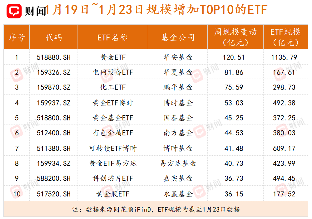 ETF周评:黄金股ETF霸榜 天量资金流出宽基 不改市场上涨本色
