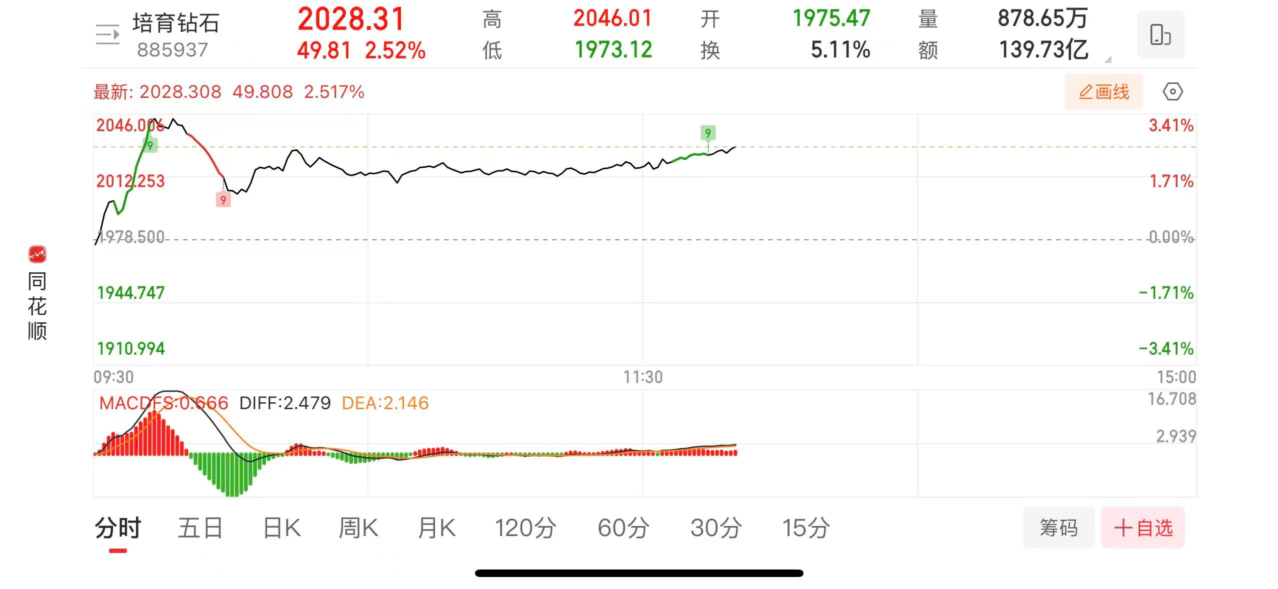 培育钻石概念继续上涨 成分股黄河旋风涨停