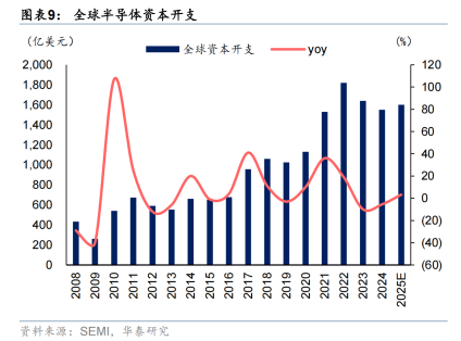 根据SC-IQ2025年5月预测,2025年全球半导体Capex将达1600亿美元,同比增长3%,其中AI相关逻辑芯片与HBM存储投资增速显著高于行业平均。