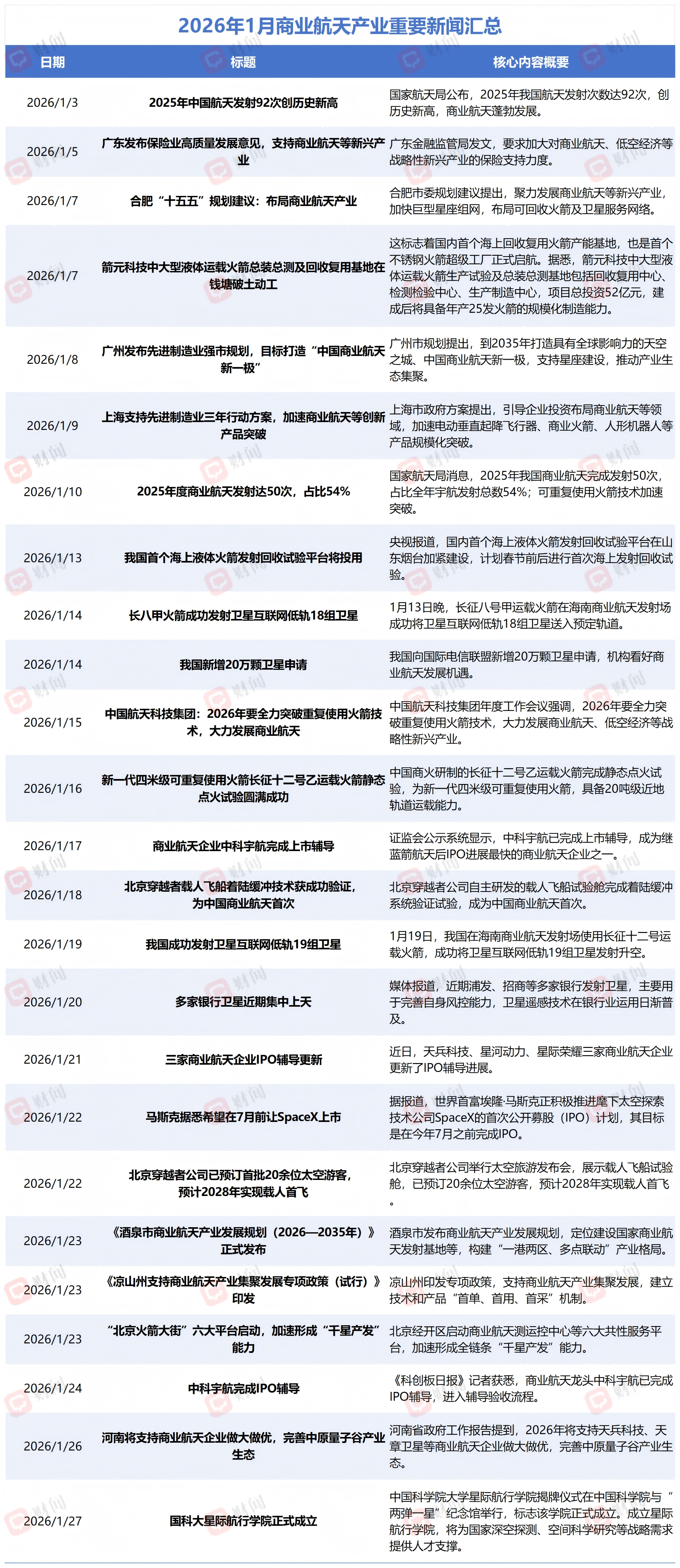 一图看懂2026年开年来商业航天大事件