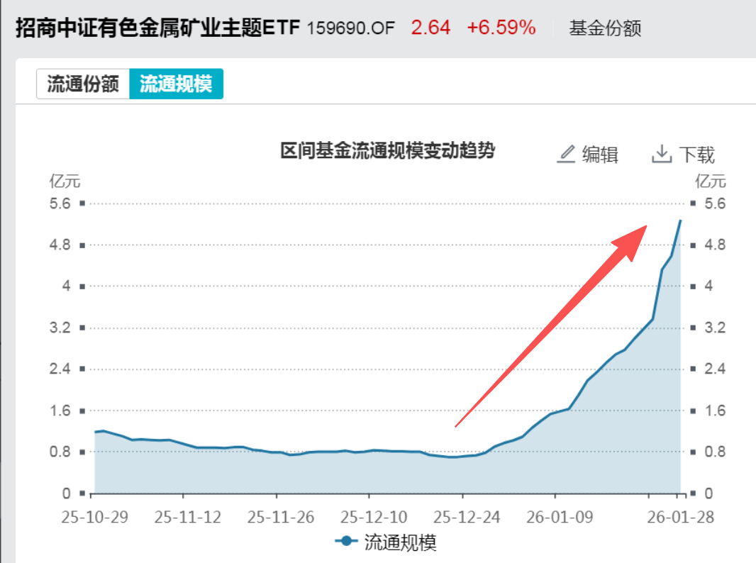 资金的流向也很明确,有色矿业ETF招商(159690)规模也在一个月内翻了7倍。