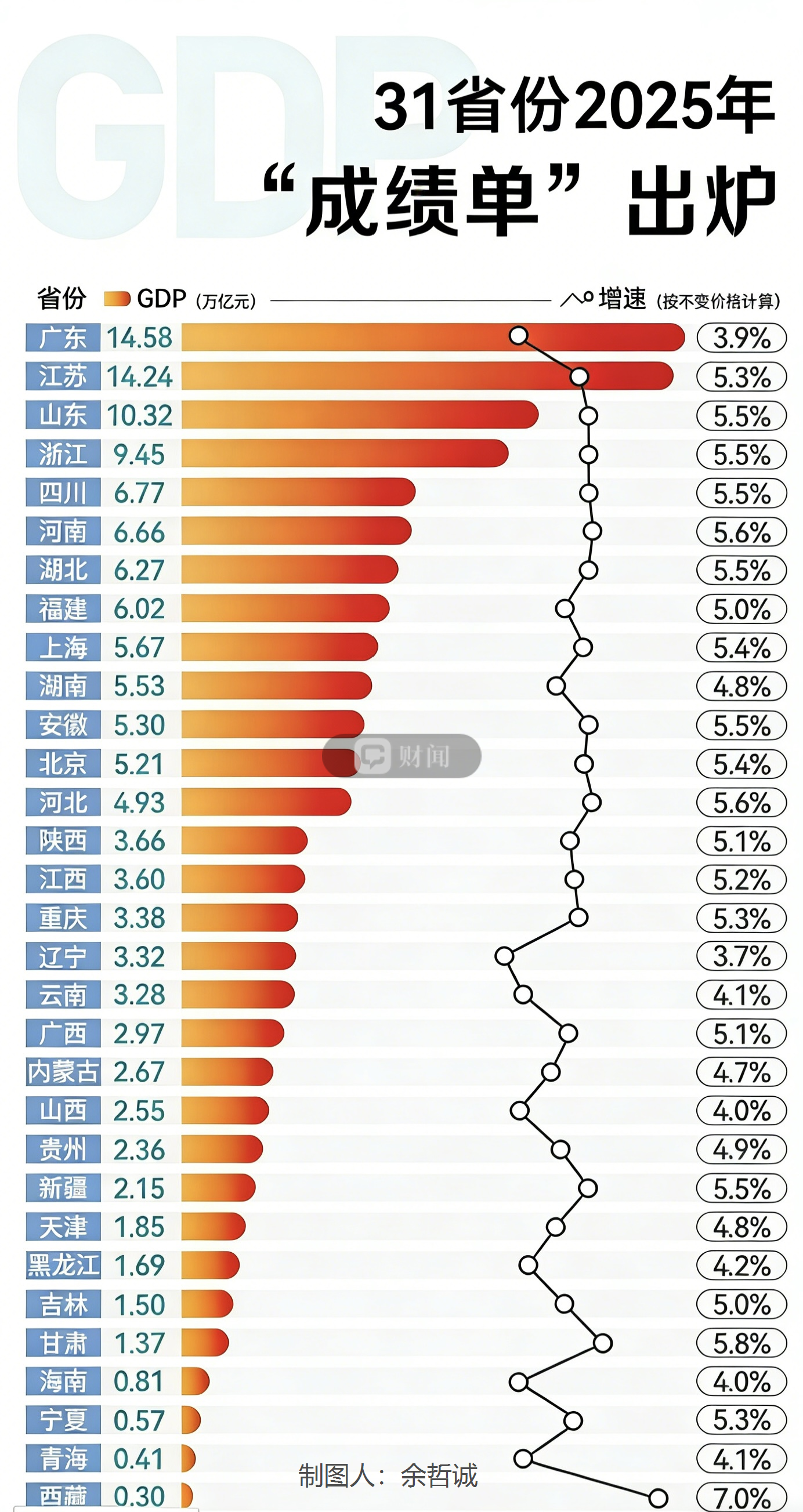 西部提速、广东放缓,经济学者解读2025年全国各省GDP成绩单