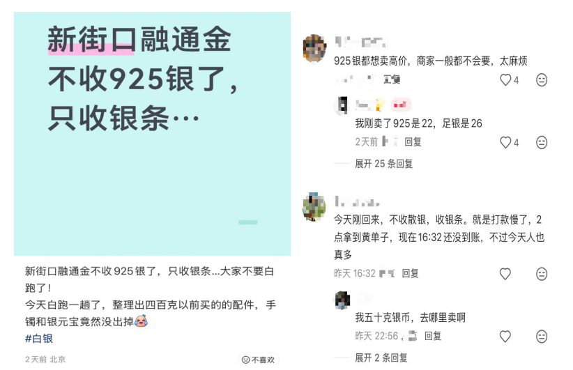 总部位于深圳水贝的“融通金”,是许多贵金属持有者首选的变现渠道。但有小红书用户于1月28日发布笔记称,其北京新街口门店已暂停银饰回收,仅接受银条。而在该笔记评论区中,也有网友表示遭遇了同样情况。