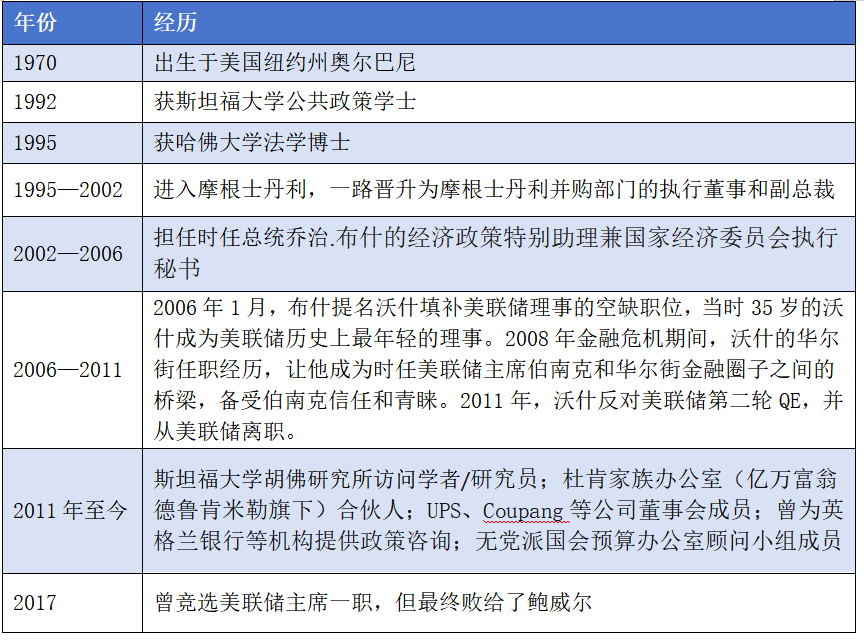 2006年,时任美国总统布什提名沃什填补美联储理事的空缺职位,当时35岁的沃什成为美联储历史上最年轻的理事,当时还因其年龄和经验不足而受到一些批评。