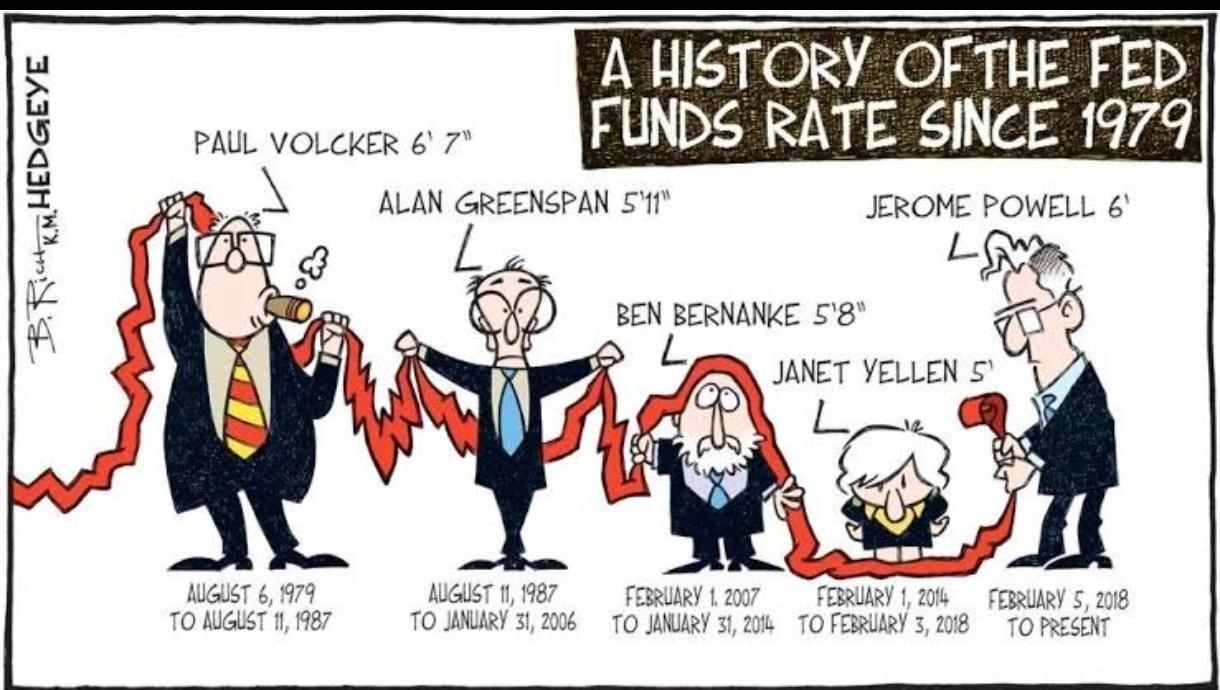 有趣的是,CNBC曾发文调侃,历任美联储主席的身高,居然和任期内的利率走势“神同步”。身高直奔2.01米(6 英尺 7 英寸)的保罗・沃尔克,妥妥是“身高天花板”,任职时也把利率飙到了历史峰值,为了对抗上世纪80年代的恶性通胀,直接将联邦基金利率推到20% 以上,堪称“最高主席配最高利率”的典范。随后,从沃尔克到耶伦,美联储主席的身高和利率都趋于下降,鲍威尔就任后,身高和利率又重新提高。