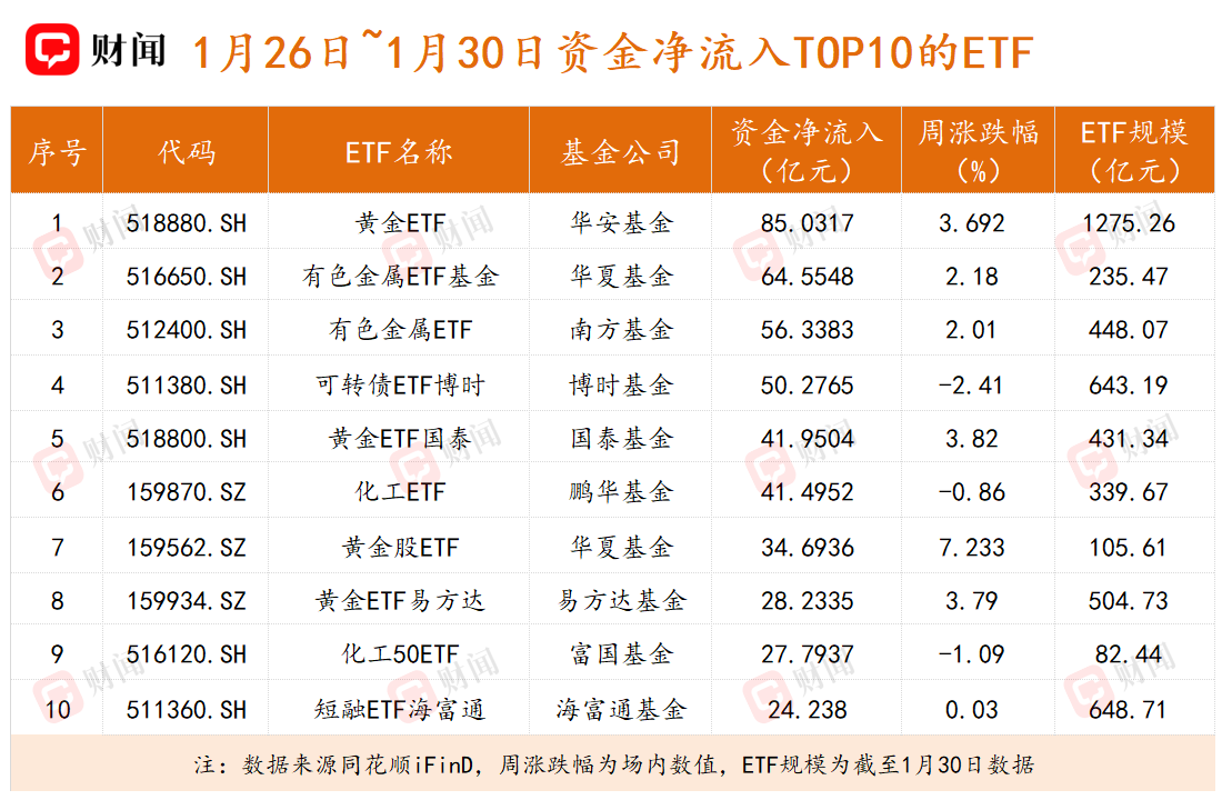 与此同时,其他主要黄金ETF也实现规模大幅增加:黄金ETF博时(159937.SZ)与黄金ETF易方达(159934.SZ)的规模周增幅均超过80亿元,反映出投资者对黄金资产的配置热情持续高涨。