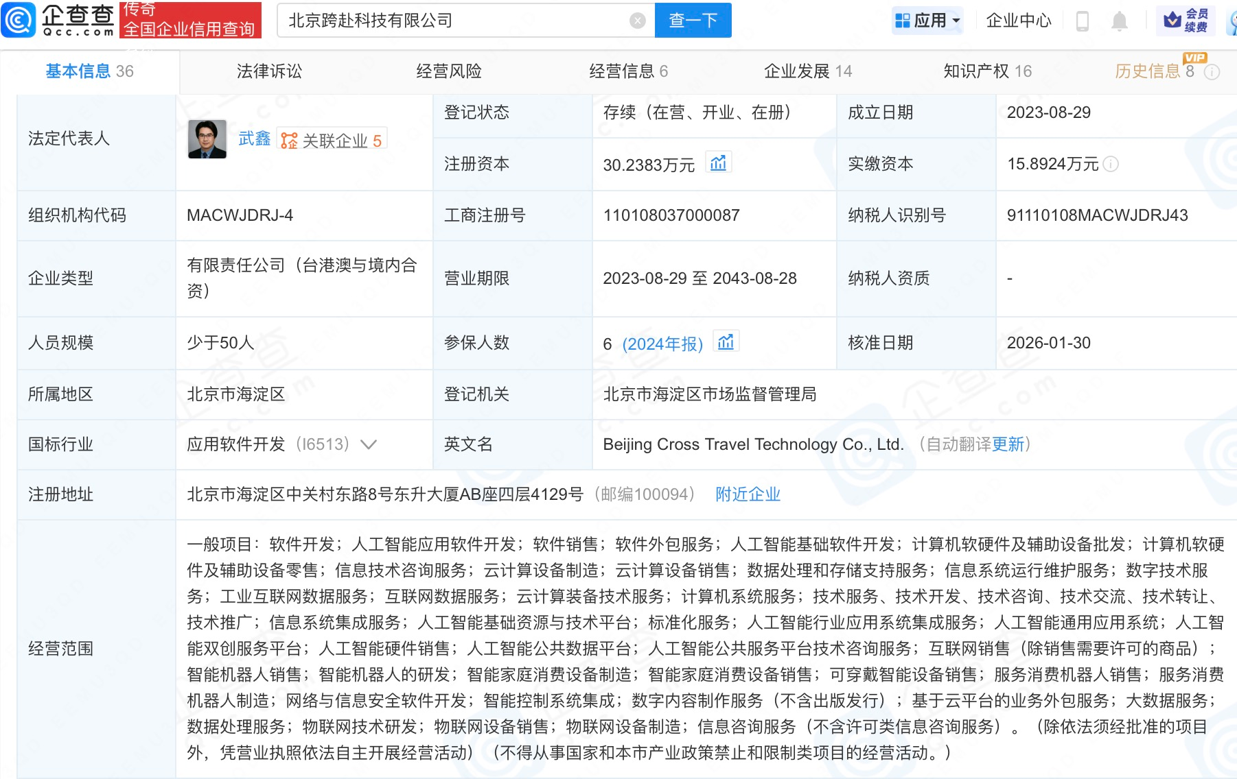 该公司成立于2023年,经营范围包括人工智能应用软件开发、软件销售、软件外包服务等。