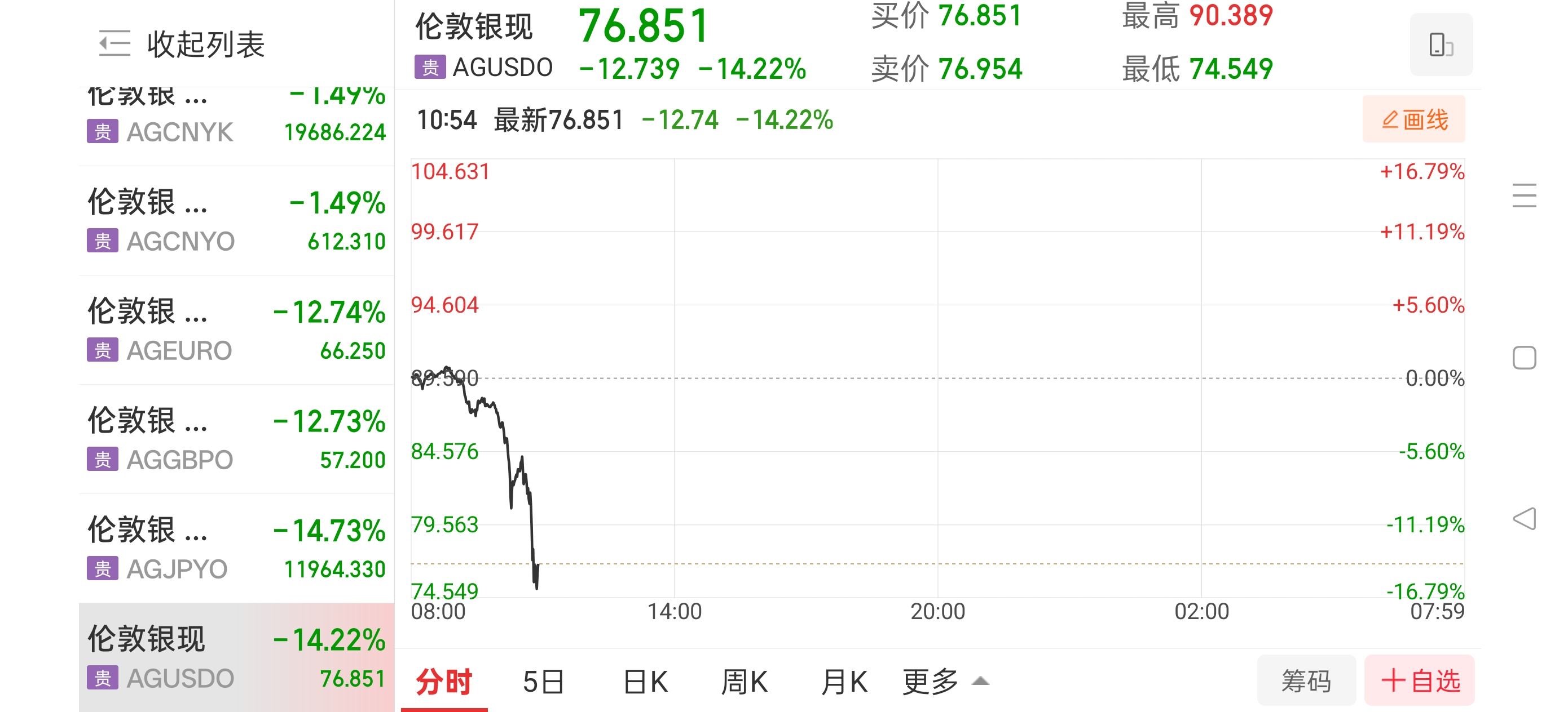 现货白银盘中暴跌16%,每盎司下跌近15美元 财闻 2026-02-05 10:58:18 白银现货盘中跌破75美元/盎司,跌幅超16%,每盎司下跌近15美元。 2月5日上午,白银现货盘中跌破75美元/盎司,跌幅超16%,每盎司下跌近13.5美元。