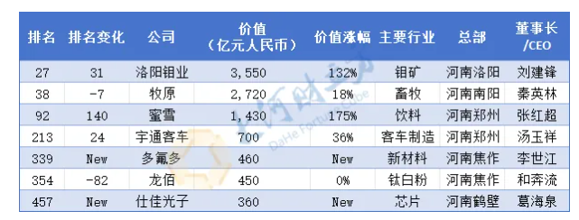 其中,洛阳钼业首次跻身全国前30,成为河南上榜企业领头羊。