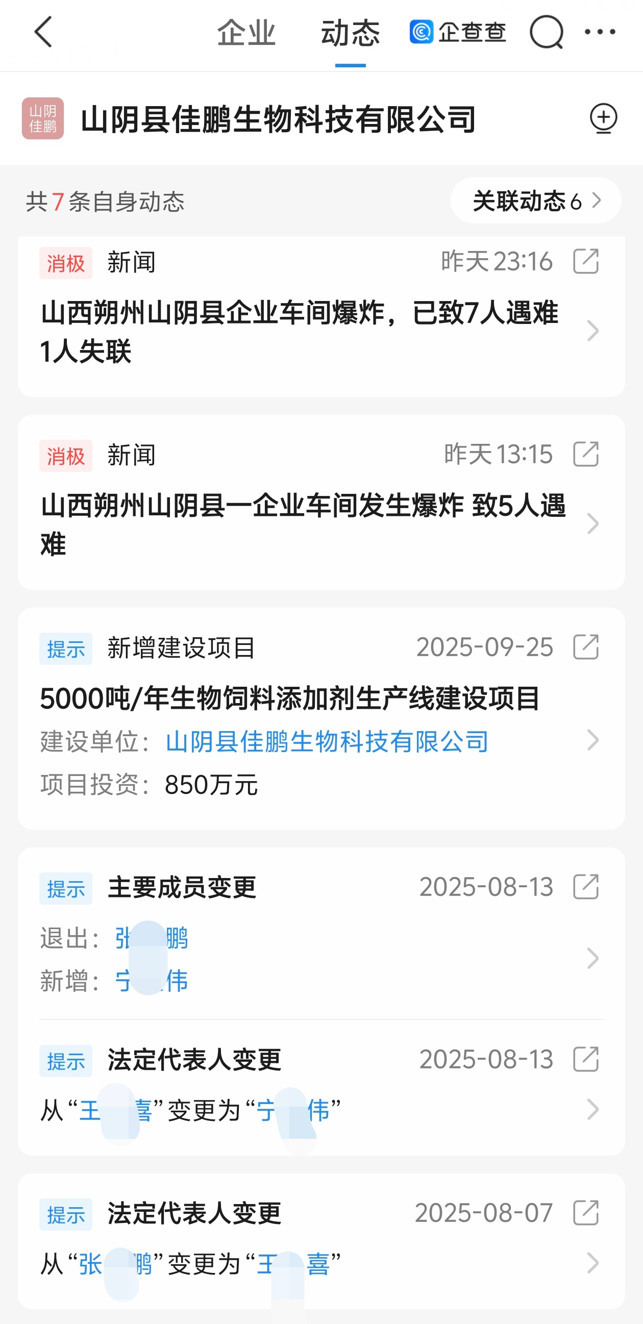山西山阴车间爆炸事故涉事公司曾更换法人代表