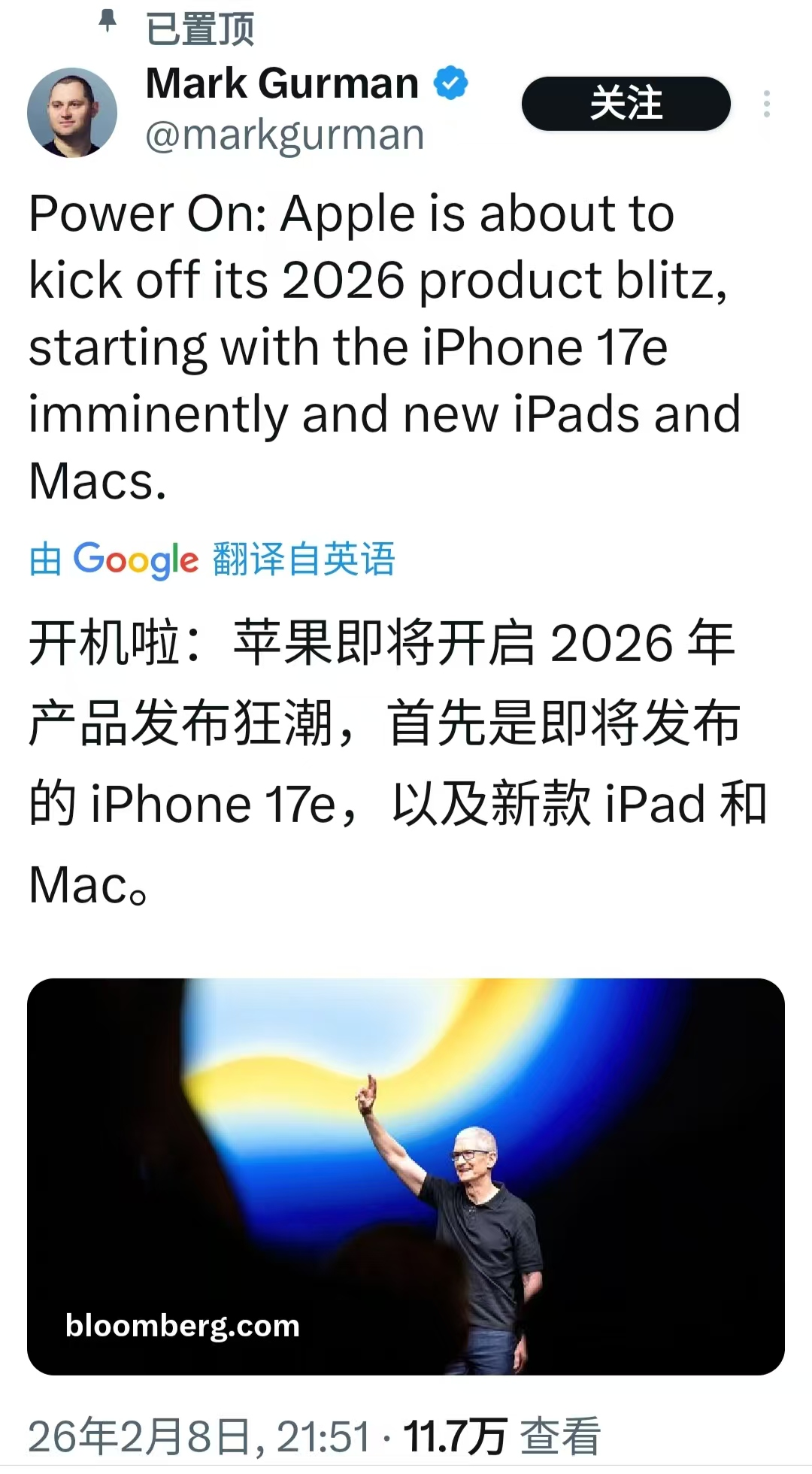 马克·古尔曼:未来几周苹果将密集推出新产品,包括iPhone 17e等