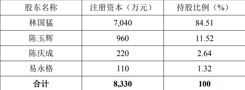 在本次投资以前,恒鑫生物共有林国猛、陈玉辉、陈庆成、易永格四大自然人股东,持股分别为84.51%、11.52%、2.64%与1.32%,注册资本为8330万元。