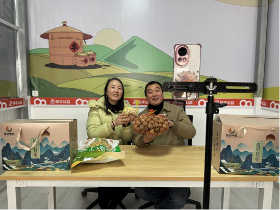 甘肃陇南的“梁掌柜”梁倩娟同样是一位返乡创业的乡村主播,近两年她通过快手直播间组织开展了100多场直播,帮助10余家农民合作社推广新产品。2024年快手公益为她捐建共享直播间,向全村免费开放设备、培训和产品资源,越来越多陇南乡亲从中获得新机遇,乡村特色农产品也借助数字化渠道走向了更广阔的市场,300余户农户由此实现增收。