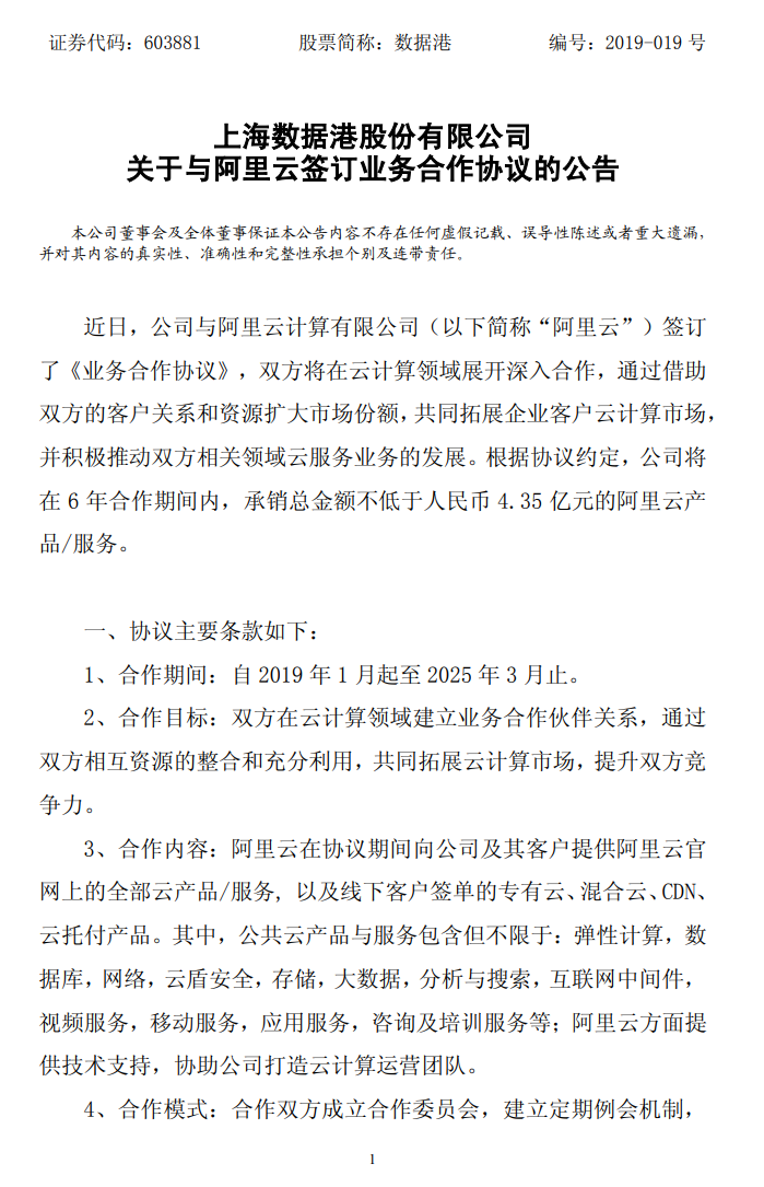 从公司公告了解到,数据港与阿里巴巴的合作渊源已久。