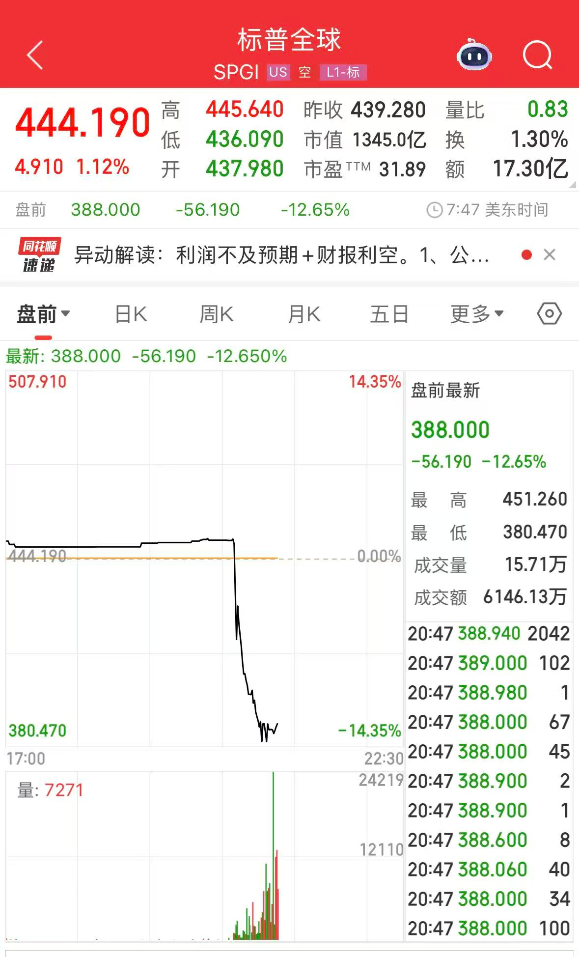2025年四季度利润不及预期,标普全球股价盘前跌近13%