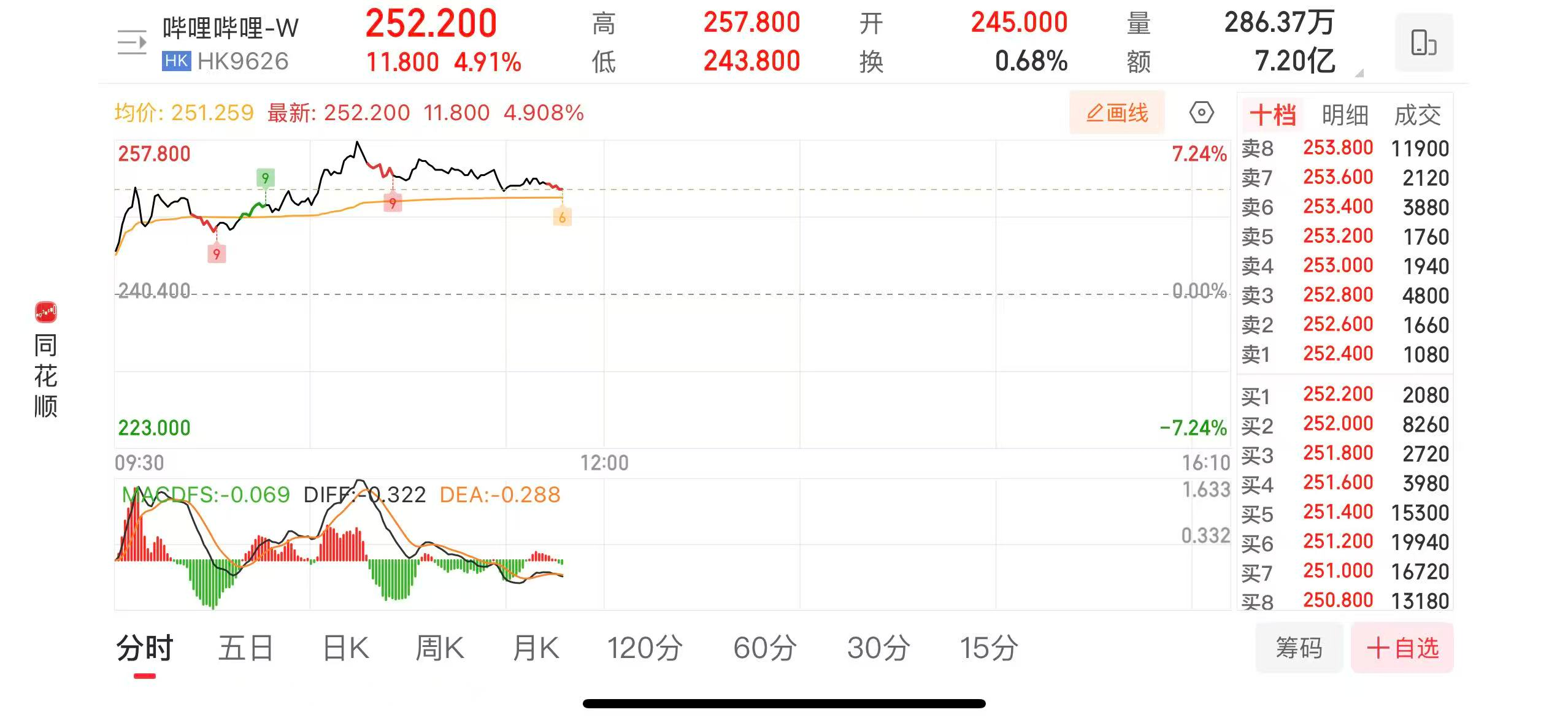 2月11日早盘,哔哩哔哩-W(09626.HK)盘中一度涨超7%,最高报257.8港元/股。