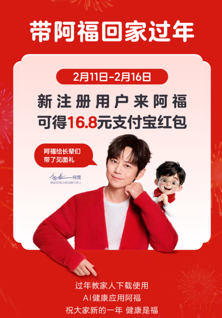 蚂蚁阿福:“新用户领红包” 活动将延长至除夕夜 财闻 2026-02-13 20:28:16 从2月11日到2月16日除夕夜,新注册用户来阿福,可领16.8支付宝红包。 2月13日晚间,蚂蚁阿福发文称,红包活动将延长,从2月11日到2月16日除夕夜,新注册用户来阿福,可领16.8支付宝红包。