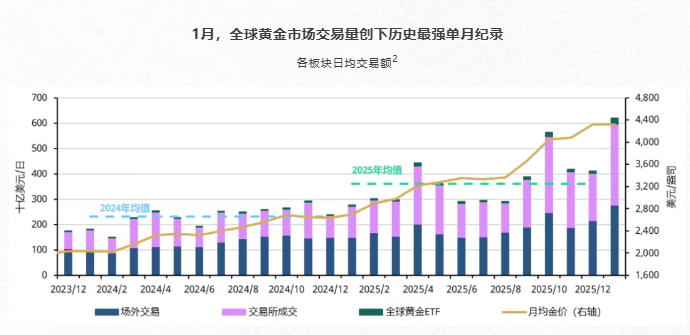 1月全球黄金日均交易额达6230亿美元,环比增52%