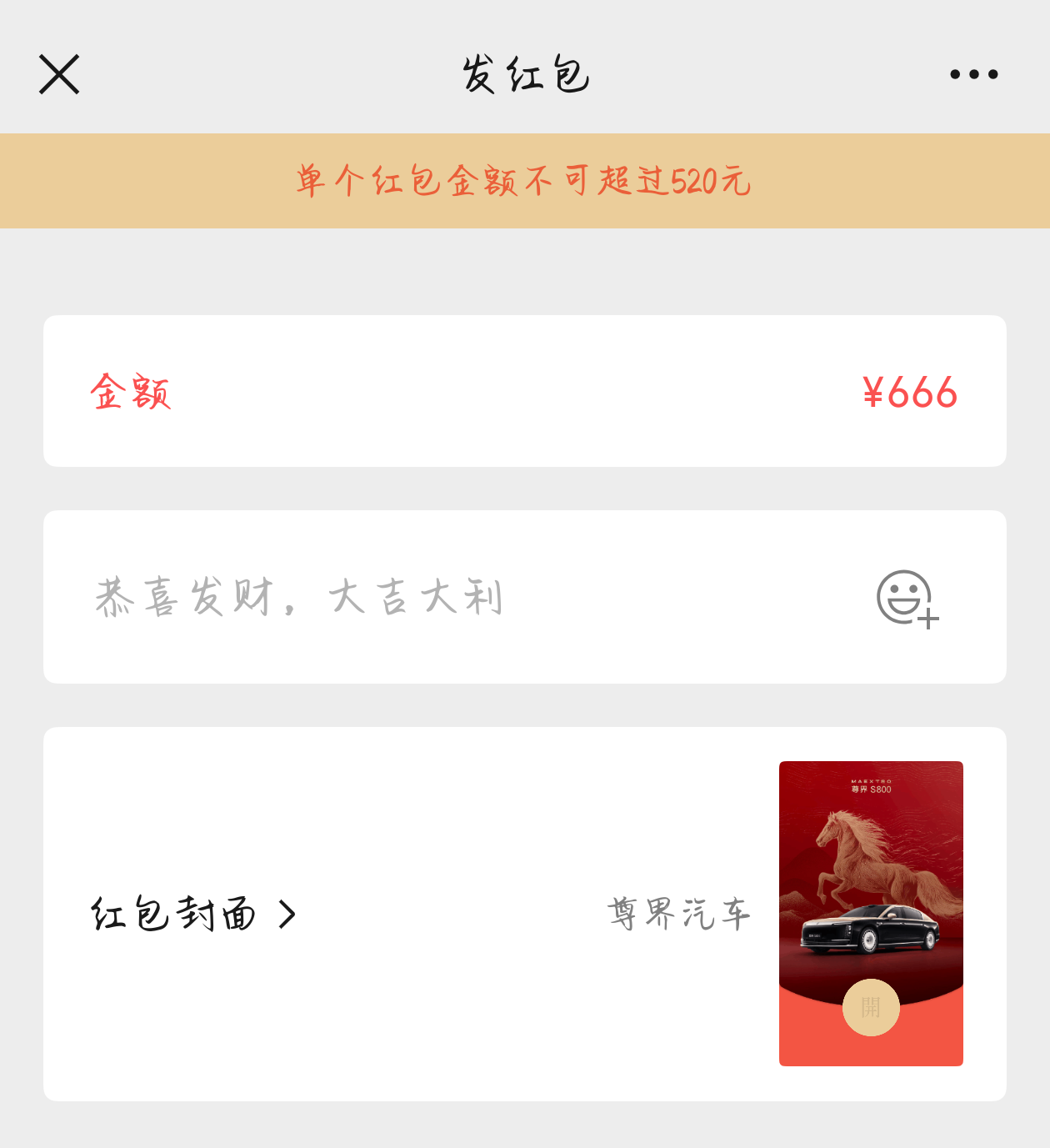 在微信群中,普通红包和专属红包上限同样为520元,拼手气红包额度不变,仍为200元。
