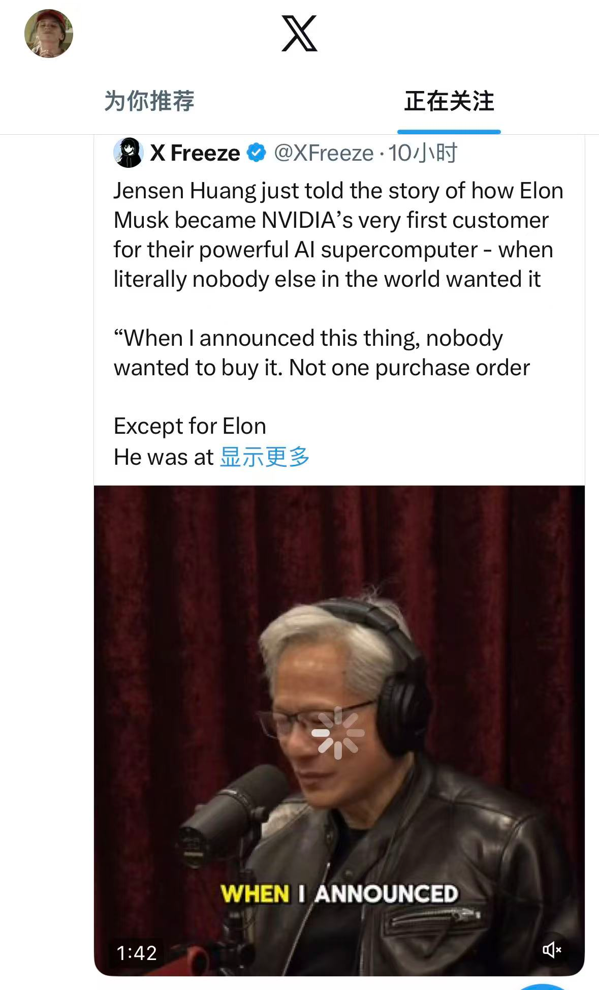 黄仁勋:在几乎无人相信AI的时候,马斯克却力挺AI