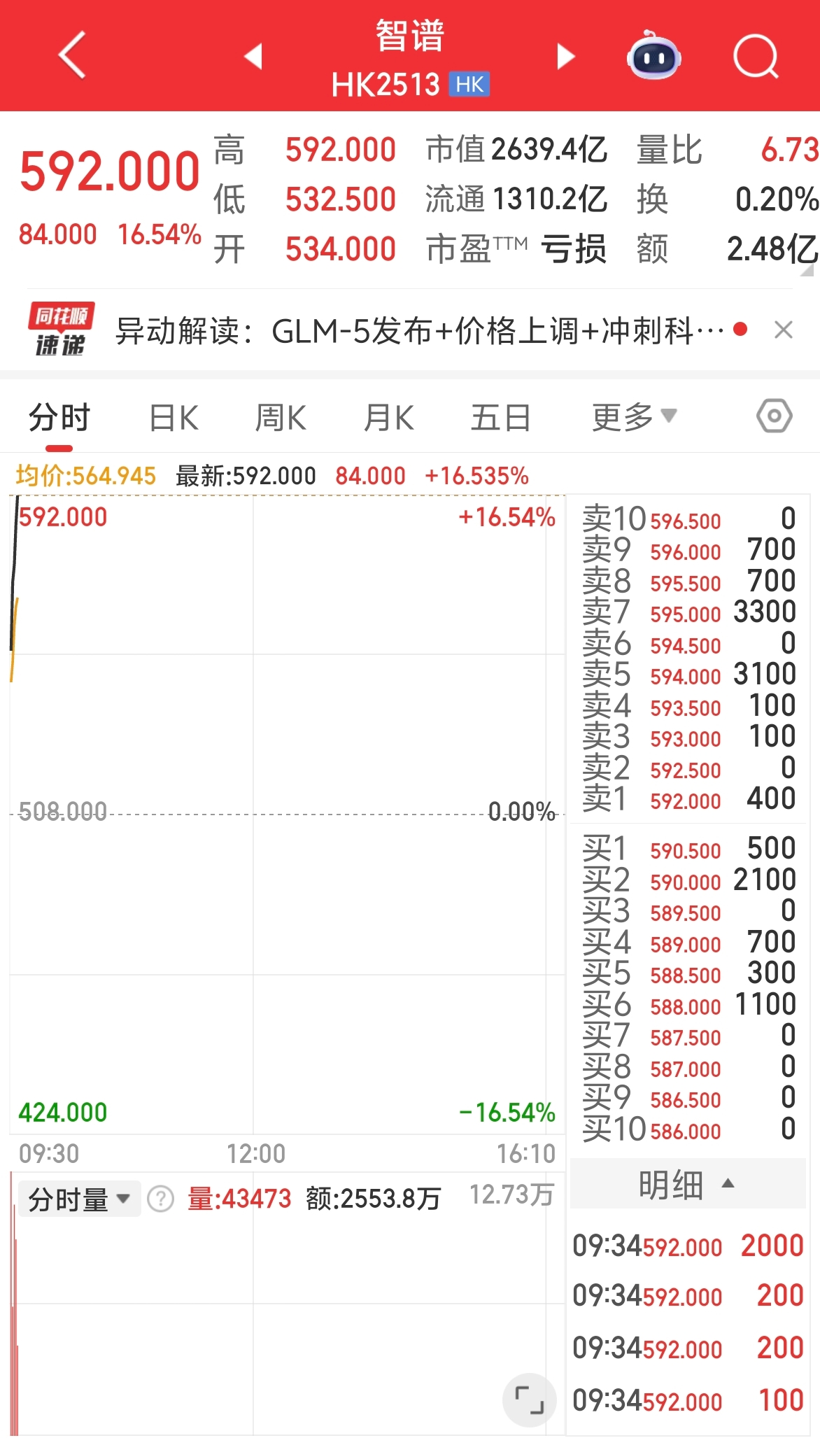 港股AI应用股走强 智谱涨超16%