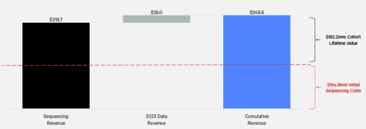 后续几年中,药企持续用这批数据做研发、找临床试验患者,Tempus继续赚钱。到2023年底,这个队列累计净收益达到4880 万美元。