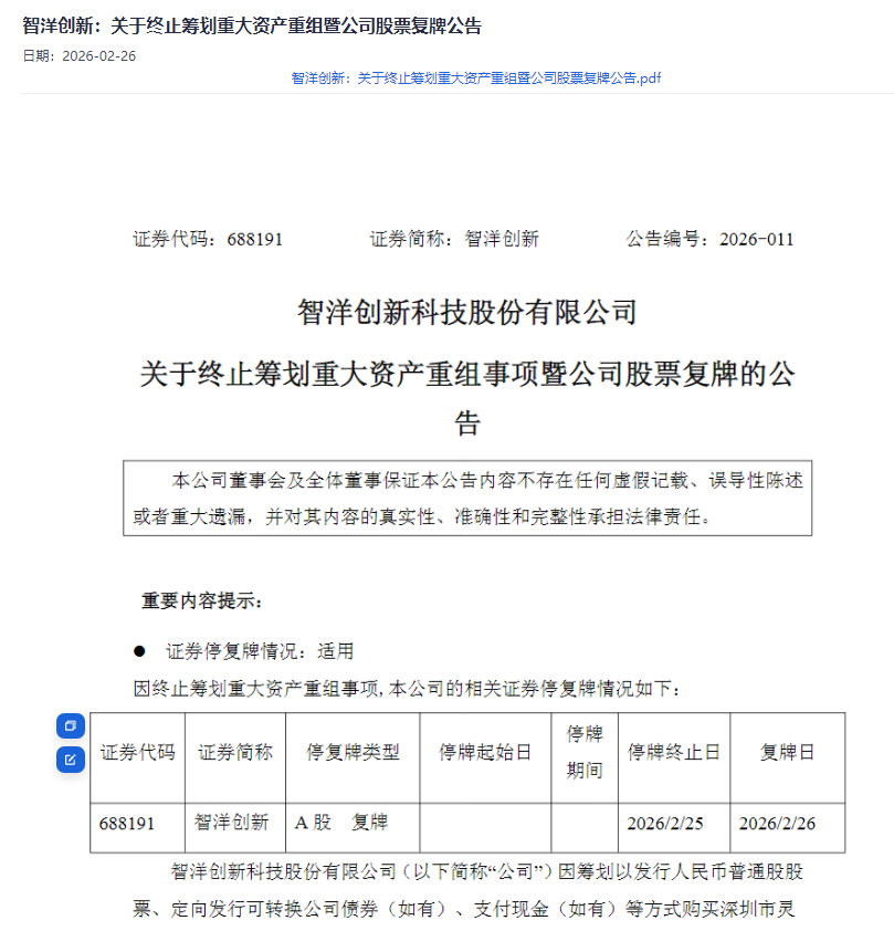 回溯可知,2月3日盘后,智洋创新首次披露收购动作并停牌,拟通过发行股票\可转公司债\支付现金等方式购买灵明光子控制权,同时募集配套资金。后因相关工作未完成及春节休市延长停牌,至26日正式复牌。但因市场环境变化,双方未能就核心条款达成一致,致使上市公司“不再谋求控股权”,转而签订战略投资意向协议。