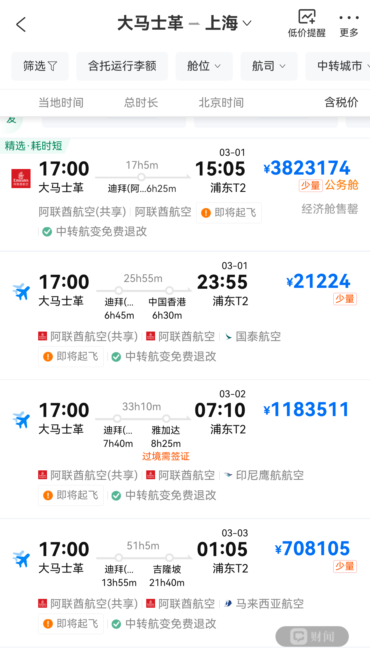 2月28日,据携程APP,当地时间17时从大马士革飞往上海浦东机场的航班,票价涨超382万元。