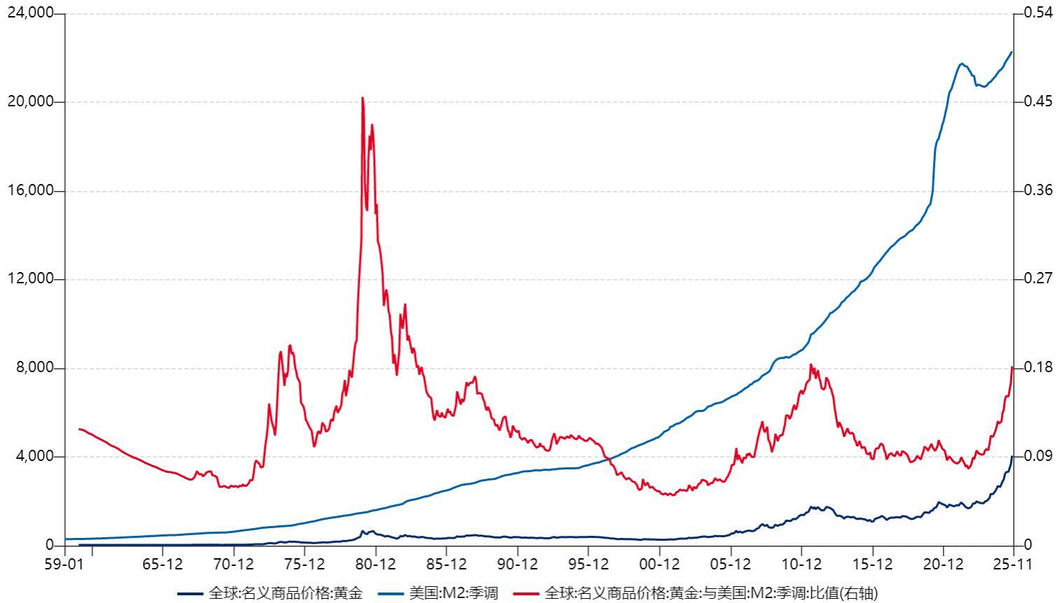 黄金/M2反应黄金对抗美元货币超发的能力,在金融危机,地缘冲突加剧,该指标往往走高。反应市场避险情绪较强。
