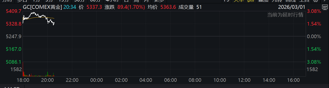 3月2日,受中东局势升级影响,避险情绪升温,现货期货价格双双升破5300美元,黄金、有色金属等资源股纷纷大涨,黄金ETF华夏(518850)大涨超3%,晓程科技(300139.SZ)、湖南黄金(002155.SZ)、四川黄金(001337.SZ)、中国黄金(600916.SH)、赤峰黄金(600988.SH)等股纷纷拉升走强。
