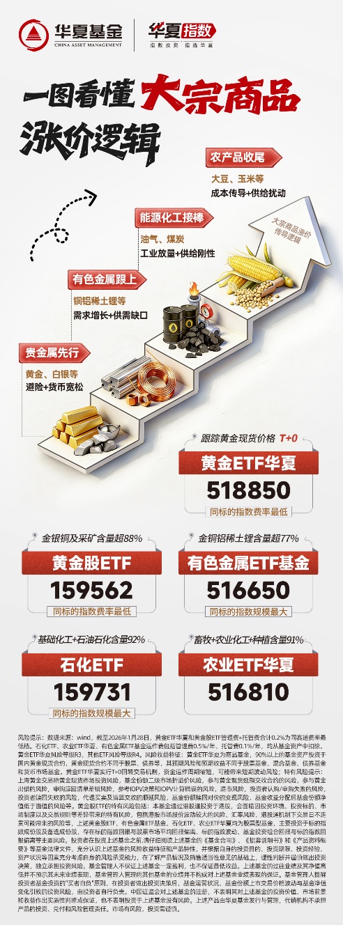 作为全市场少数连续四年调整的资产,2025年,农业表现虽不如科技、金银惊艳,但也在一步一个脚印,埋头向上【农业ETF华夏(516810)2025年累计涨幅超26%】,2026年,有望伴随涨价周期、内需复苏、政策反内卷、农业现代化等多重催化共振,农业估值修复,或许会更为亮眼。