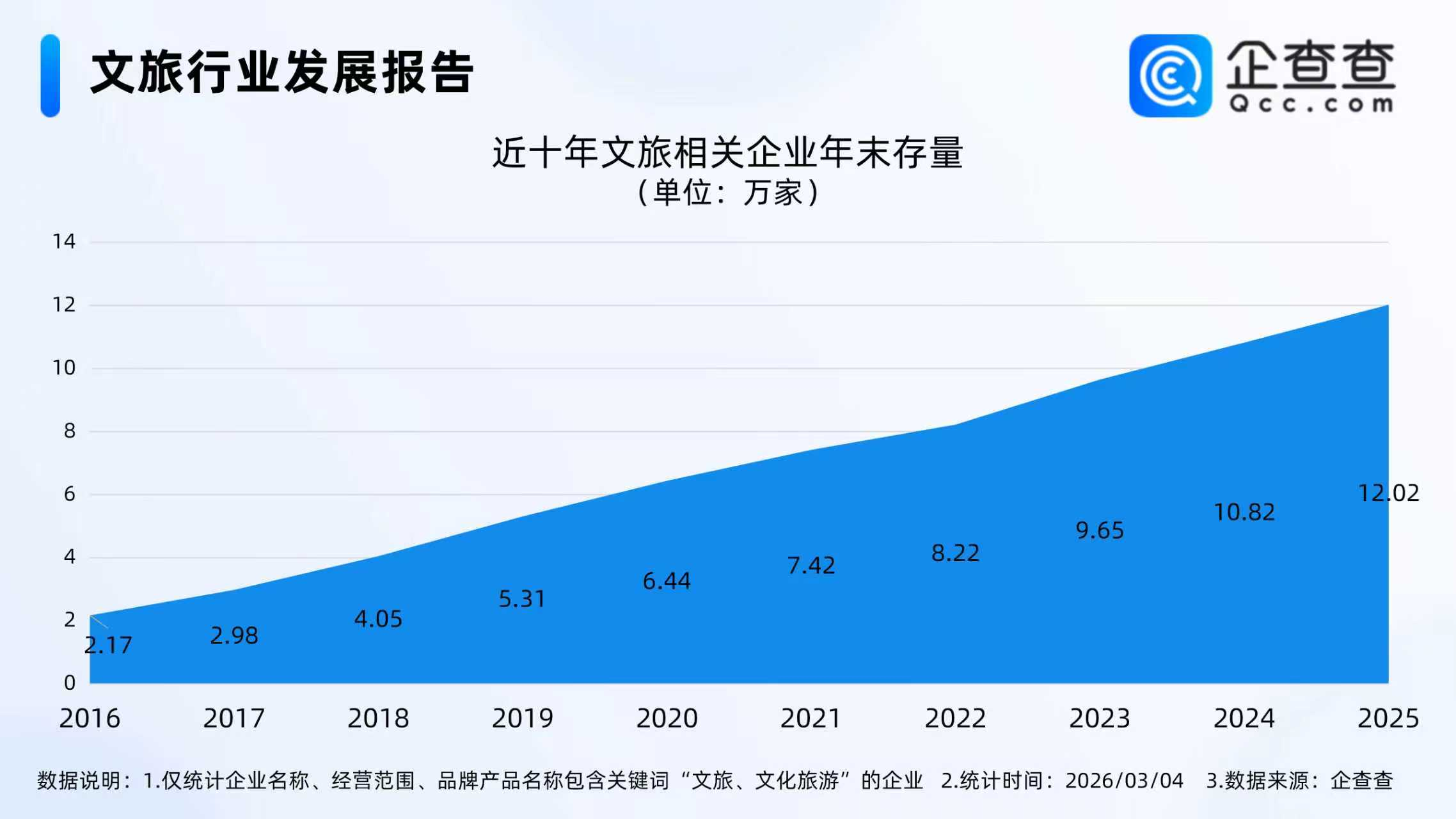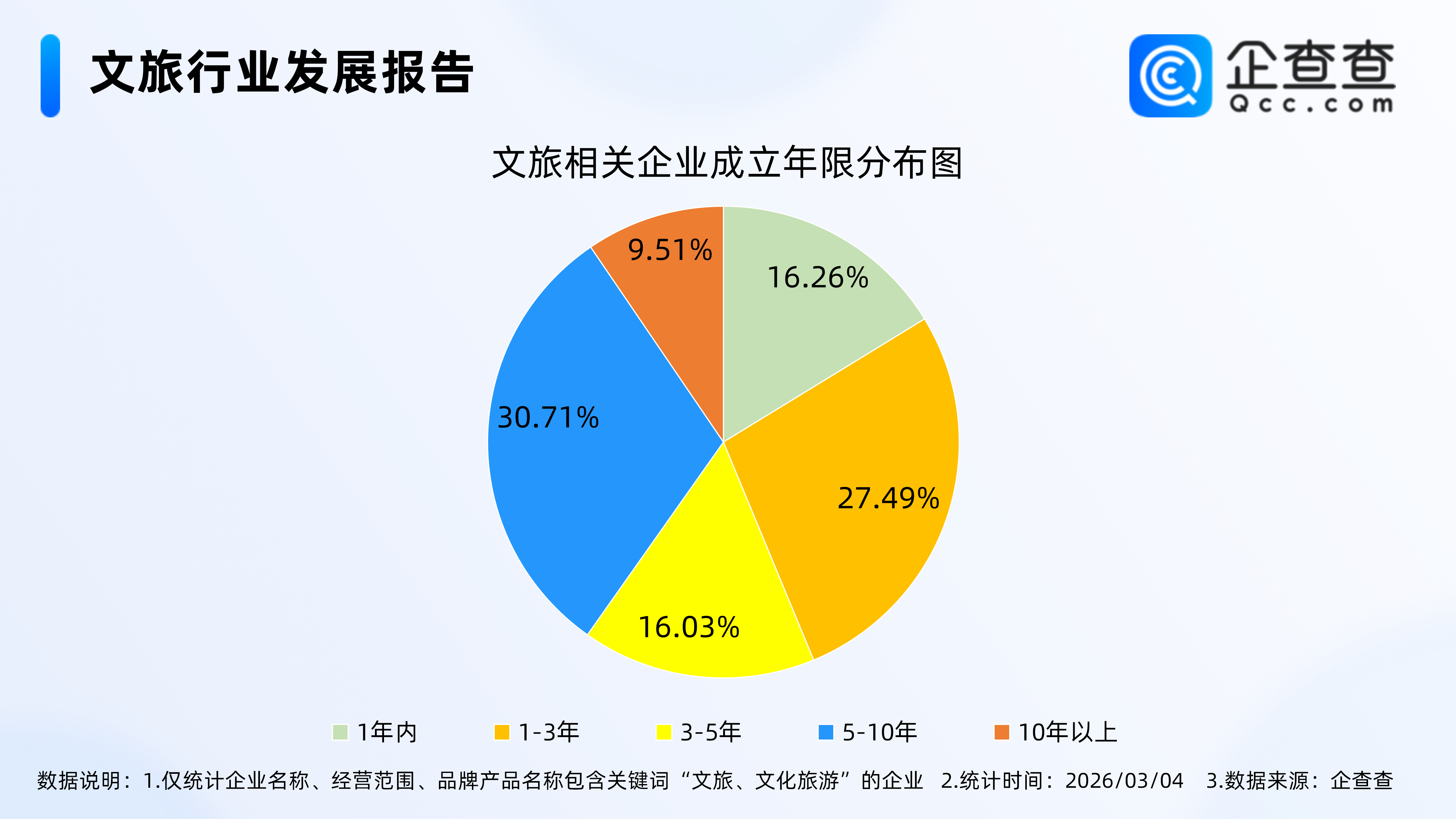 企查查数据显示,截至3月4日,国内现存文旅相关企业12.64万家。近十年文旅相关企业存量规模呈持续攀升态势,2025年末文旅相关企业存量达12.02万家,较十年前(2016年)增长了近5倍。从经营时间来看,成立年限在5-10年的文旅相关企业最多,占比30.71%。从地区分布来看,文旅相关企业主要集中分布在华东地区,占比29.64%。注册量方面,2025年全年注册2.06万家文旅相关企业。截至3月4日,今年已注册0.25万家文旅相关企业。