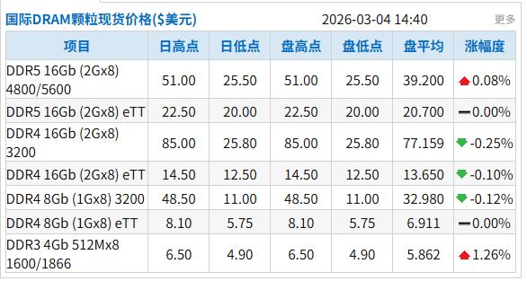 机构:DDR4和DDR5部分颗粒小幅下跌
