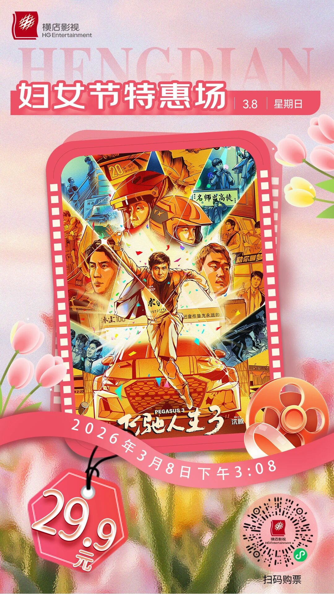 横店电影城推出“三八”国际妇女节特惠场,《飞驰人生3》仅需29.9元