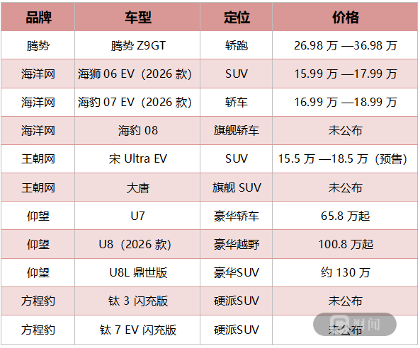 通过王朝、海洋、腾势、仰望以及方程豹五大品牌矩阵的同步更新,比亚迪进一步完善了从主流家用到高端豪华再到个性越野的完整新能源产品体系,也体现出其在新能源汽车市场持续扩大产品覆盖面的战略布局。