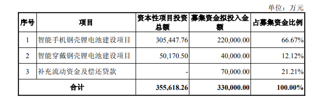 珠海冠宇:拟募资不超33亿元 用于智能手机钢壳锂电池建设等项目