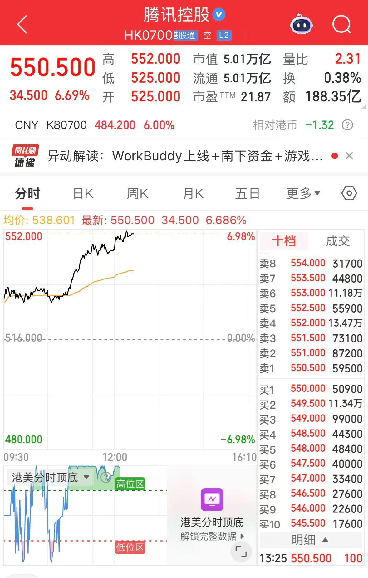 WorkBuddy上线即爆!腾讯蹭上“小龙虾”,股价大涨近7%重回5万亿