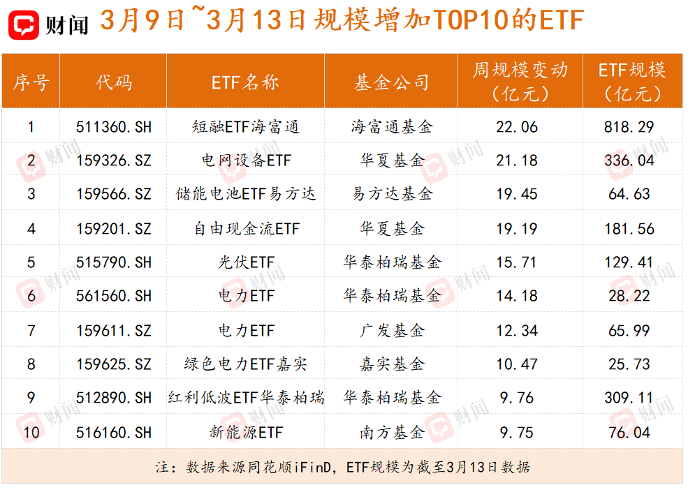从规模变动来看,短融ETF海富通成为上周规模增长冠军,单周规模增加22.06亿元,总规模达818.29亿元。该产品再度突破800亿元大关,流通规模创下历史新高。