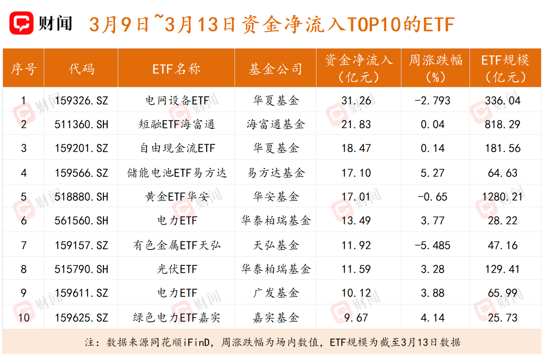 ETF周评:电池、新能源强势上涨,电网设备、有色金属逆势吸金