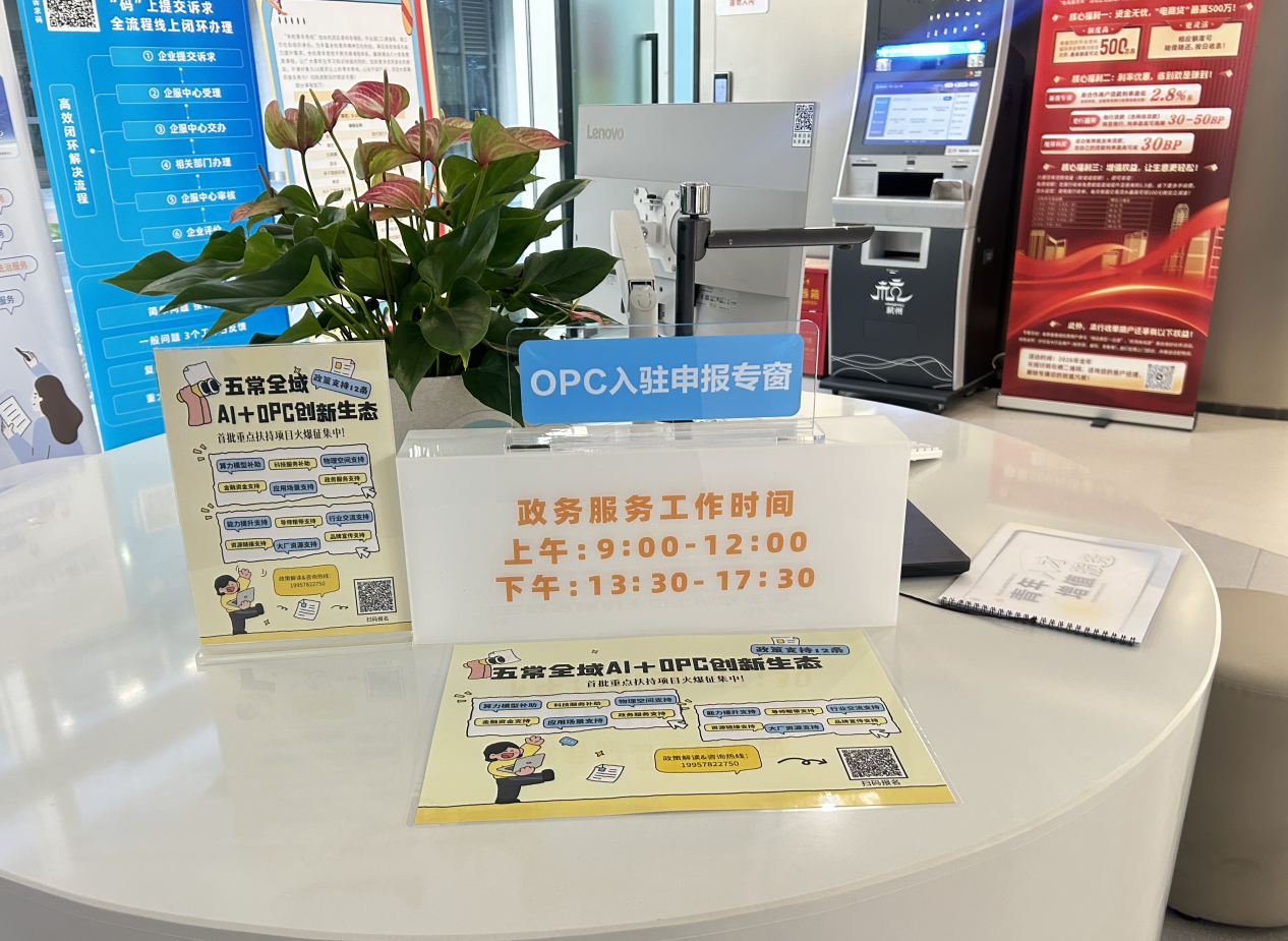 为了更好地服务这些“一人军团”,五常街道配备了专属政务服务专员,为OPC项目提供政策咨询、知识产权申报、资质认定等全流程指导,还把商事登记服务窗口放到了青橙国际创新创业中心的楼下,后者是余杭区青年人才创业综合体,由五常街道于2024年9月为青年人才打造,首批为OPC提供的免费工位也放在这里。