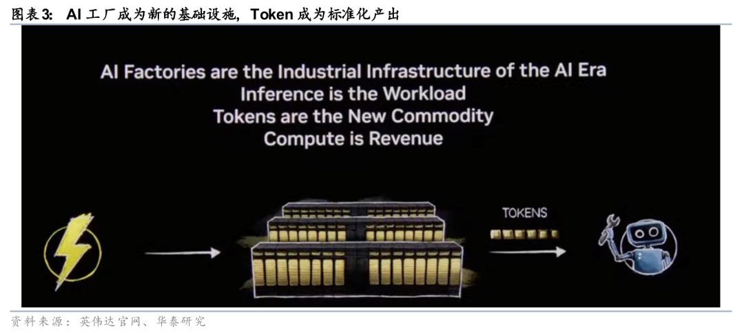 其二,产业阶段明确转向,AI 已从大模型训练时代,全面进入推理+智能体+物理AI的工业化时代,Token,就是人工智能大模型理解和生成语言的最小语义单元,也可以通俗地理解为AI世界的“语言原子”,将成为AI时代的核心商品,推理与智能体场景将带来Token消耗的指数级增长,算力需求的持续性、刚性显著增强;